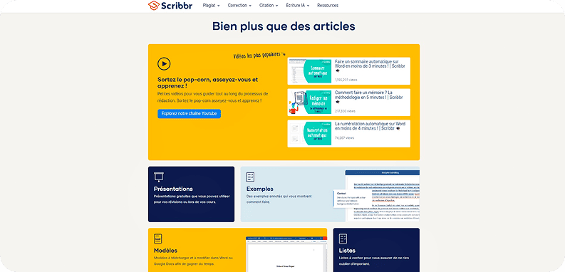 En revanche, Scribbr propose un blog particulièrement riche et bien structuré, offrant de nombreux contenus informatifs, guides méthodologiques et ressources pédagogiques destinés aux étudiants.